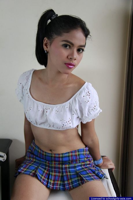 Schoolgirls Asia: 19 year old Vilma removes her school uniform to finger her pussy
