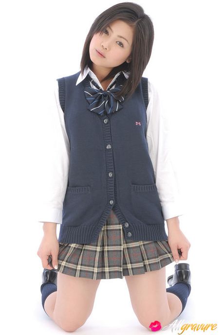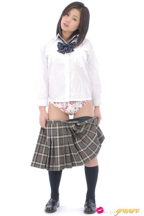All Gravure: Adorable asian school girl takes off her clothes to show panties