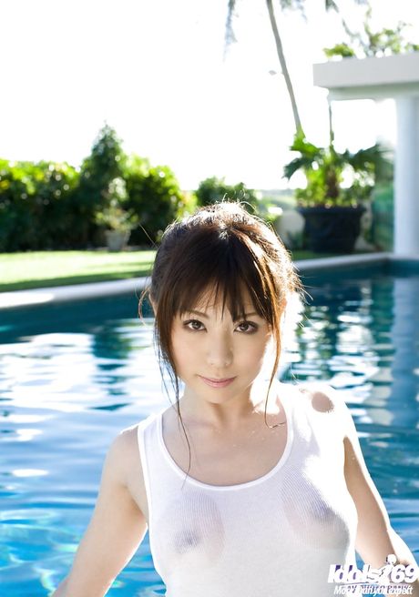 Idols 69: Adorable japanese cutie Aya Hirai in fancy skirt showing her beauty near the pool