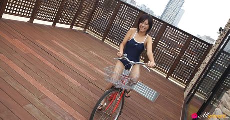 All Gravure: Ageha Yagyu Asian in spandex bath suit shows curves on bike