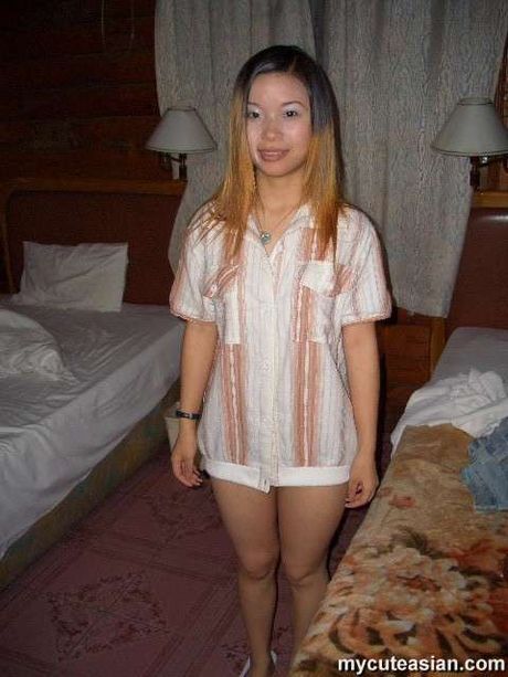 My Cute Asian: Amateur Asian girl with tiny tits strips and spreads her pussy on a bed