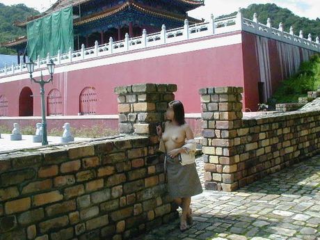 City Invasion: Asian amateur chick strips and shows her big booty and tits in a public place