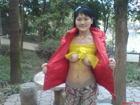 City Invasion: Asian amateur teen strips and shows her hairy cunt in the public park