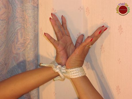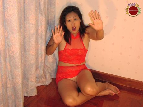 Asian Tied Up: Asian amateur woman strips and bares her tiny tits and pussy
