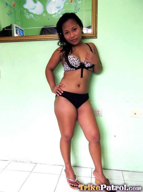 Trike Patrol: Asian babe Jo Ann strips and shows her tiny tits and shaved pussy