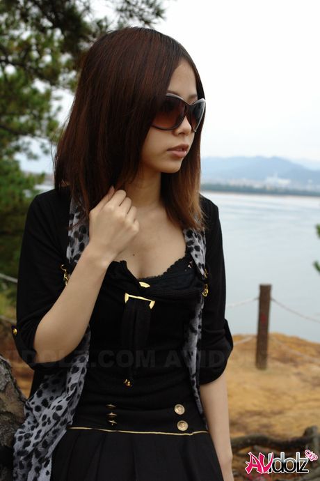 AV Idolz: Asian babe Rena strips to her pantyhose and bares it all outdoors