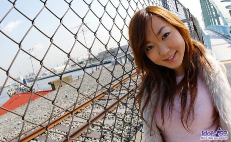 Idols 69: Asian babe Yumi strips and shows her hairy cunt in a solo