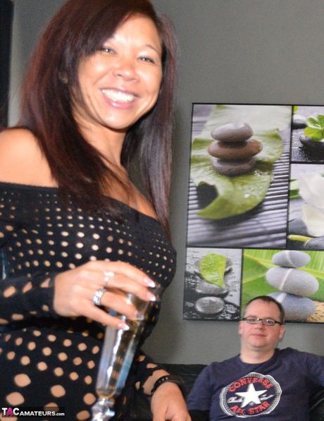 TAC Amateurs: Asian MILF Nude Chrissy shows her amazing juggs and ass in a solo striptease