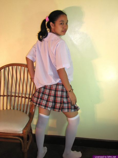 Barfine2cash: Asian schoolgirl amateur strips and unveils her tiny tits and pussy