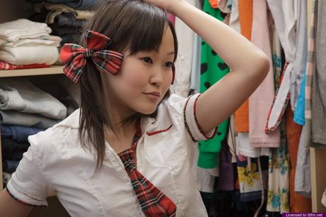 LBFM Addiction: Asian schoolgirl with a perfect ass toying her pussy with a dildo