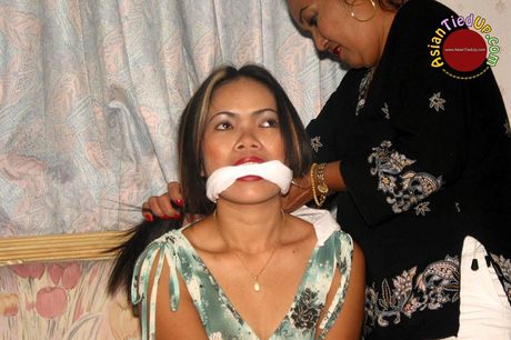 Asian Tied Up: Asian teen amateur girl strips and plays with her pussy on the bed