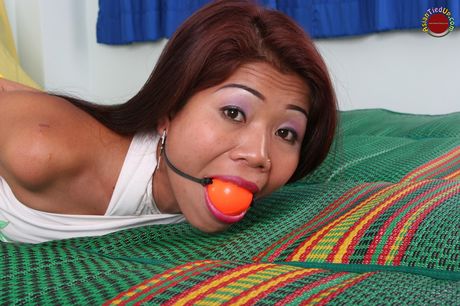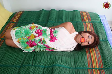 Asian Tied Up: Asian teen amateur girl strips and shows her sexy feet and pussy