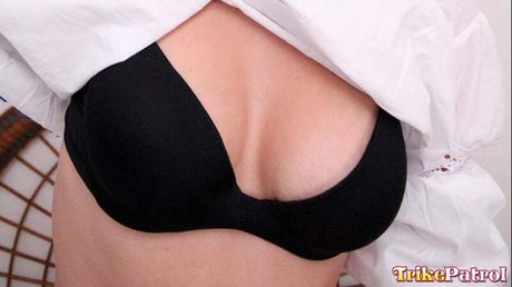 Trike Patrol: Asian teen Ann strips and shows her big boobs and pink pussy up close