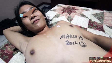 Asian Sex Diary: Asian teen April gets her hairy pussy licked and screwed by a horny guy