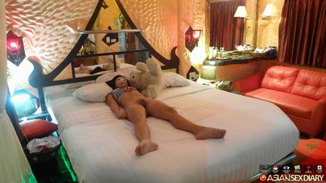 Asian Sex Diary: Asian teen Maki strips and rubs her twat while masturbating in a solo