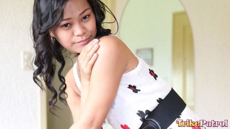Trike Patrol: Asian teen Sissi strips and shows her tiny tits and pink pussy up close