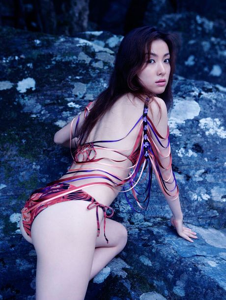 All Gravure: Beautiful asian nymph exhibits her pale ivory skin in a bikini