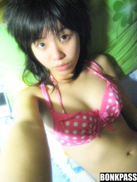 Bonk My Chinese: China teen girl in sexy pink colored polka dot bikini
