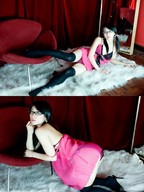 All Gravure: Cute gravure idol showing off her thick bottom in hot pink tights
