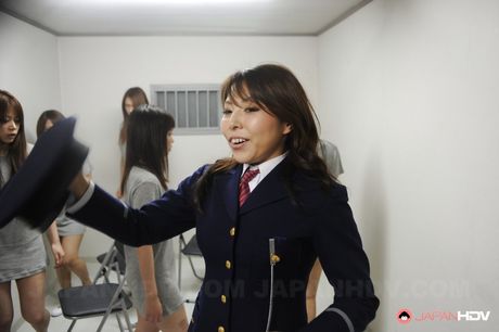 Japan HDV: Deluxe japanese brunette milf Akane Satozaki in uniform fucked by many guys