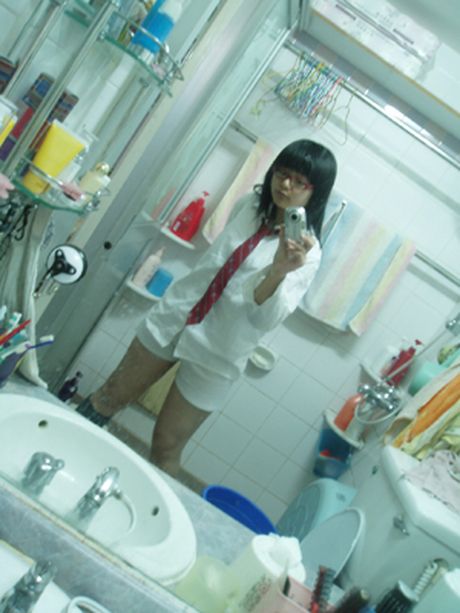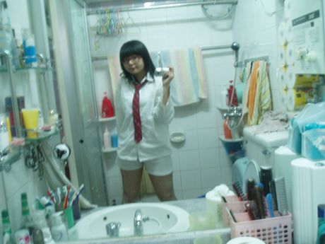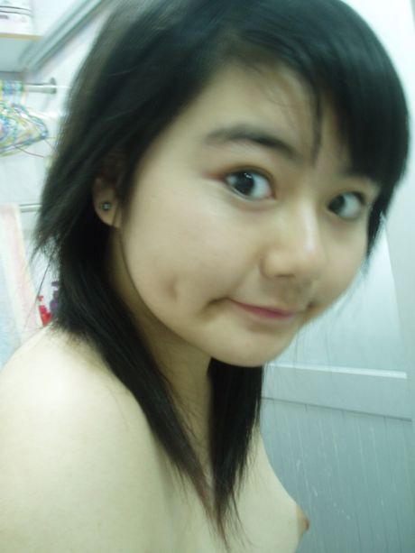 AsianTeenPictureClub: fat teen poses in the mirror with small tits