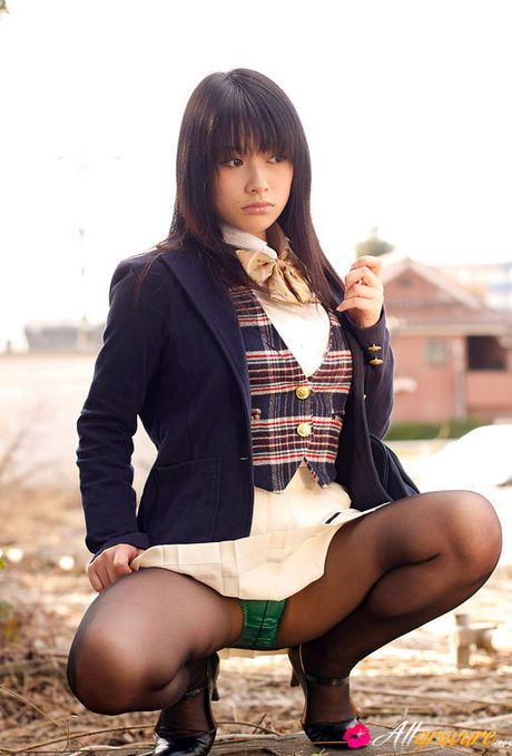 All Gravure: Gorgeous gravure idol school girl shows off her green panties