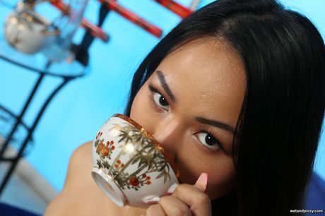 Wet And Pissy: Hot Asian teen Jureka Del Mar toying her pussy with a dildo in a solo