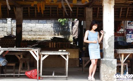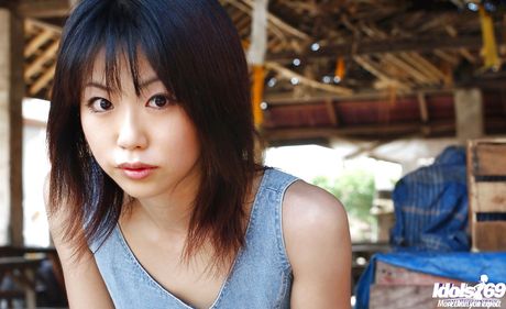 Idols 69: Hot japanese dark hair hottie Saki Ninomiya in fancy skirt uncovering small tits and hairy pussy