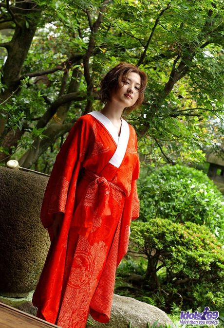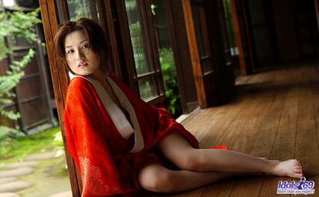 Idols 69: Japanese tramp with an open red kimono waiting for her next fucking appointment