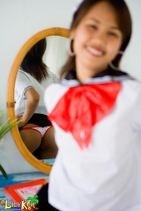 Lily Koh: Lily Koh in Japanese schoolgirl uniform shows yummy cameltoe