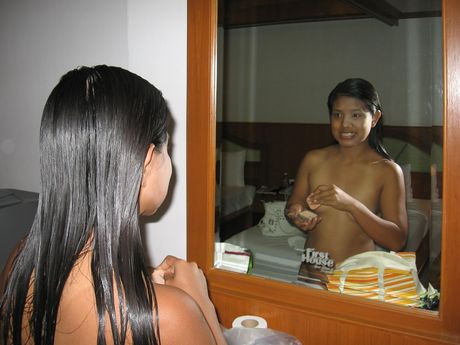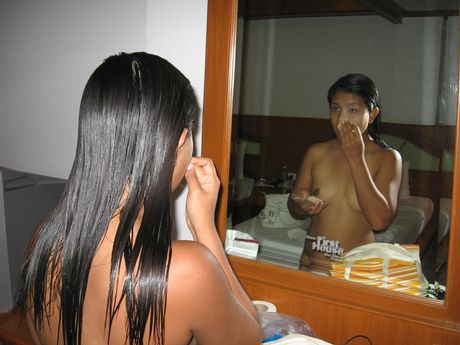 AsianTeenPictureClub: lots of spreading from this dark skinned asian girl