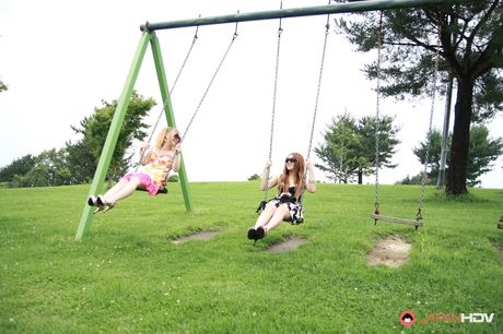 Japan HDV: Lusty hot girls pose in group in their bikinis and have fun on the set