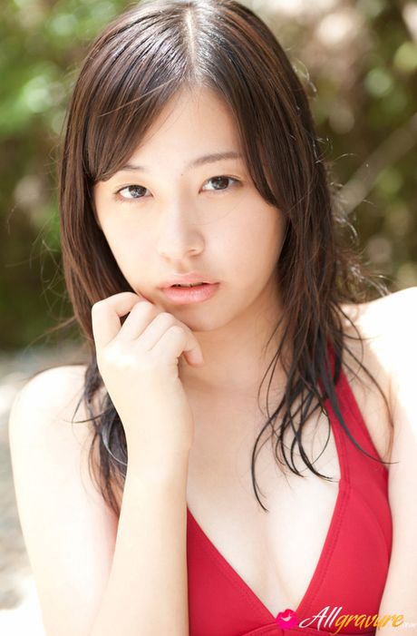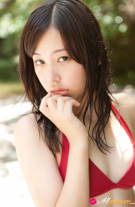 All Gravure: Mikako Horikawa Asian with hot body in red lingerie plays outdoor