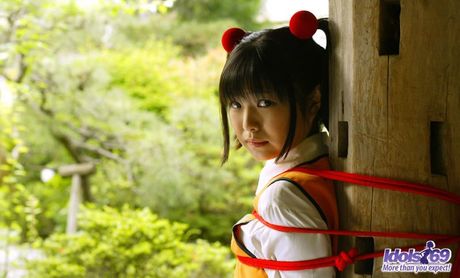 All Gravure: Miu Nakamura Asian in bath suit plays with water in her garden