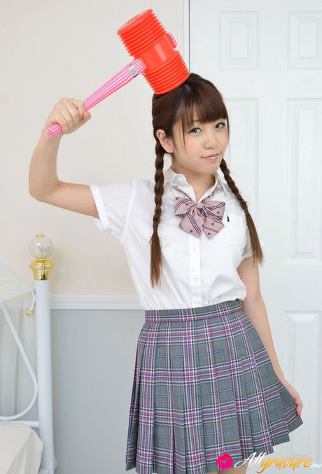 All Gravure: Mizuho Shiraishi Asian with uniform and pigtails plays like child