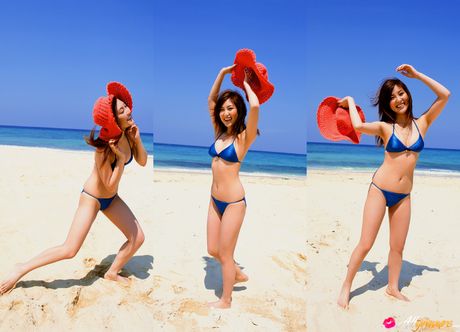 All Gravure: Natsuko Tatsumi Asian with nasty bum in bath suit plays on beach