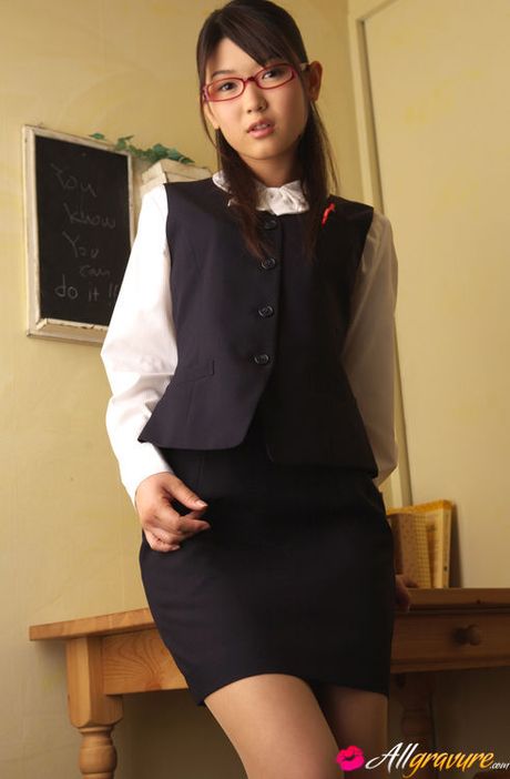 All Gravure: Noriko Kijima Asian with specs and office suit is elegant and hot