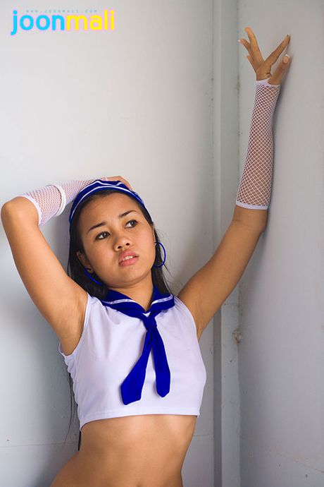 Joon Mali: Petite Asian bubble butt teen Joon Mali in flowered panties
