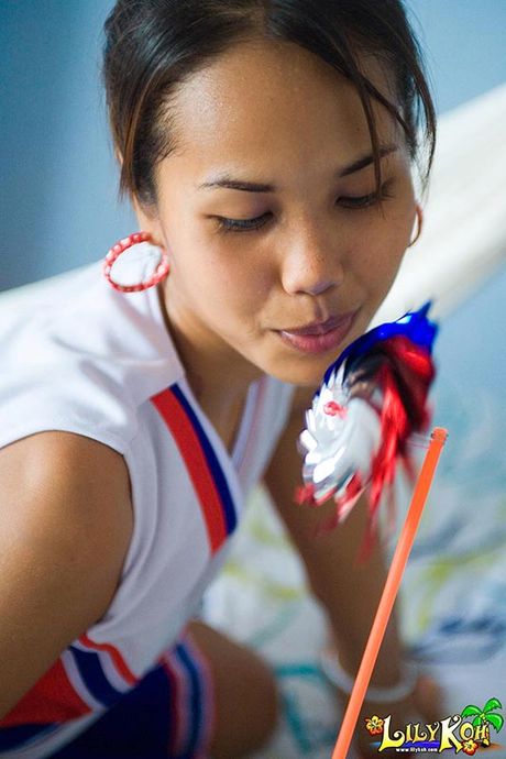 Lily Koh: Petite Asian cheerleader exposes tiny titties
