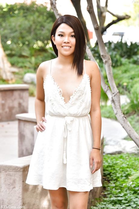 FTV Girls: Rangy oriental brunette Kaia Kasey in sexy skirt showing small tits and spreading her legs outdoor