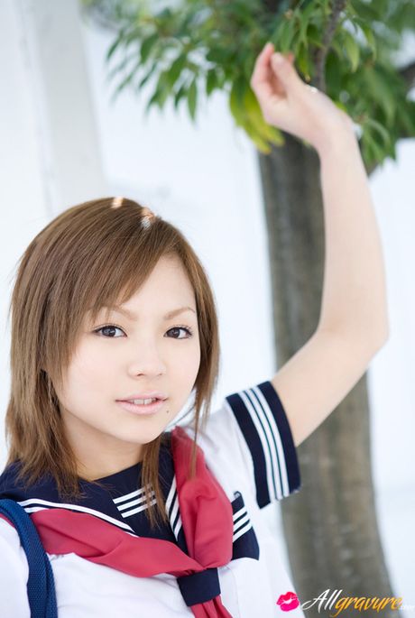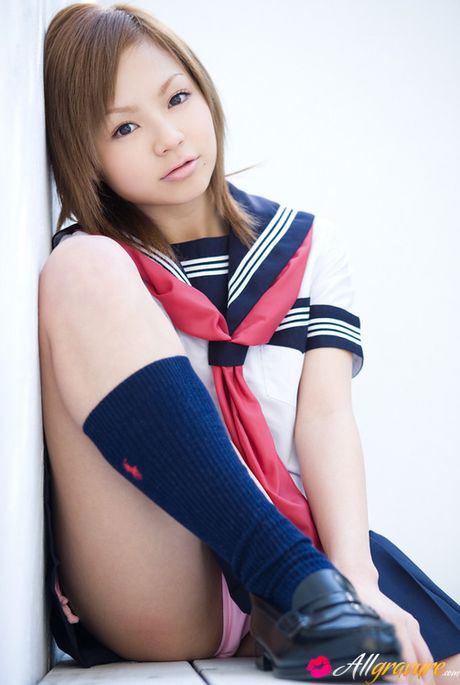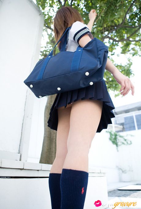 All Gravure: Runa Hamakawa Asian plays with her uniform skirt after classes