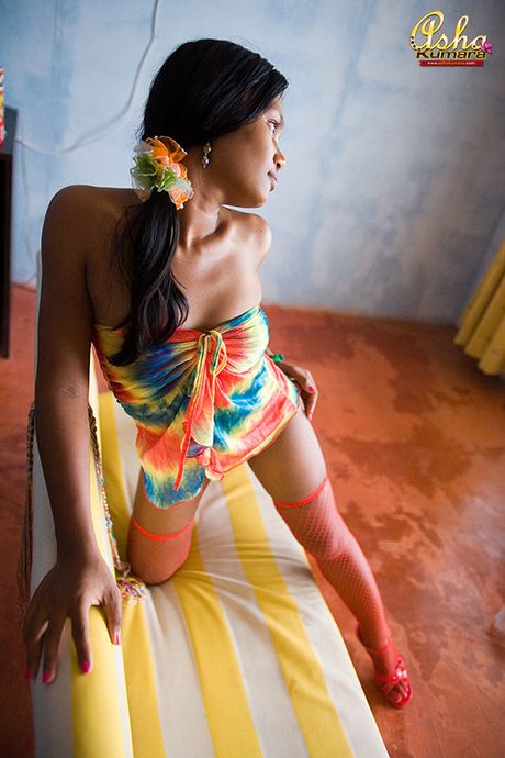 Asha Kumara: Seductive dark skinned Indian teen partially covers nipples