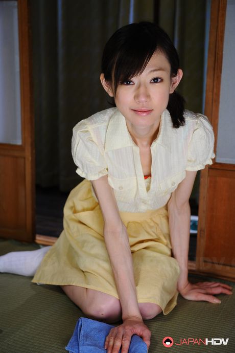 Japan HDV: Servant girl Aoba Itou poses in see through gown in her bedroom on bed