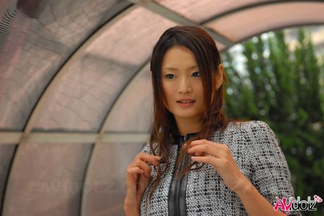 AV Idolz: Sexy Asian babe Risa strips to her pantyhose and poses naked outdoors