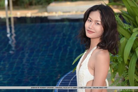 Met Art: Sexy Asian Jesikah flaunts her sexy booty and tits poolside