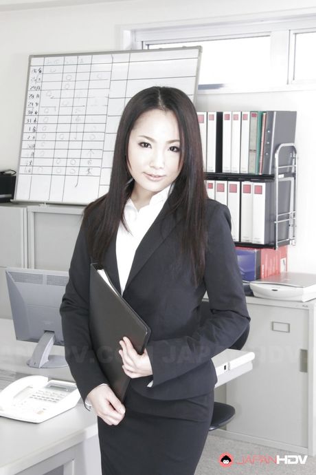 Japan HDV: Sexy japanese brunette milf Ai Mizushima in fancy skirt shows her butt in office