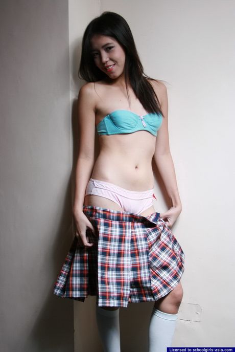 Schoolgirls Asia: Shy white skinned schoolgirl flashing tight her hairy muff