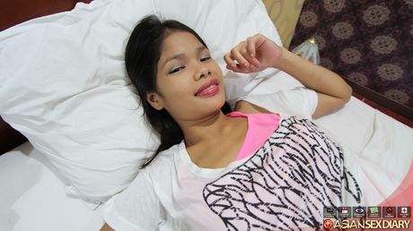 Asian Sex Diary: Skinny Asian teen Anabel strips and shows her hairy pussy up close