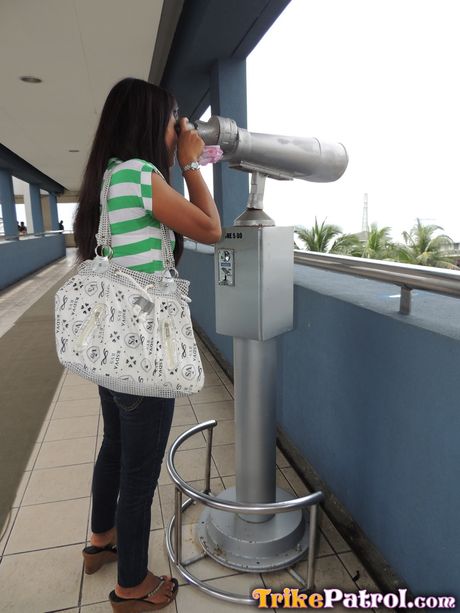 Trike Patrol: Skinny Asian teen Katerina strips and shows her tiny tits and pussy