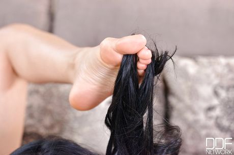 Thin Fetish: Skinny Asian teen Tyra Banxxx strips and rubs her cunt on the bed
